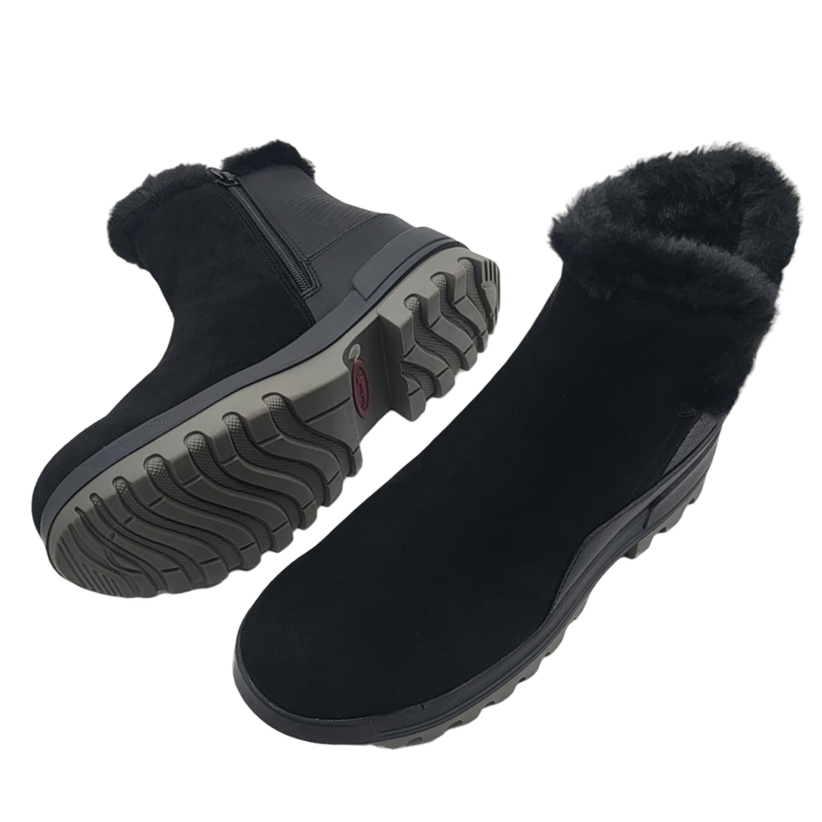 Stay warm and stylish with the Baretraps winter boot. Featuring a premium Suede Leather upper, cozy faux-fur lining, a rugged rubber sole, and Weatherproof Technology, this boot is designed for warmth, traction, and protection in cold weather.