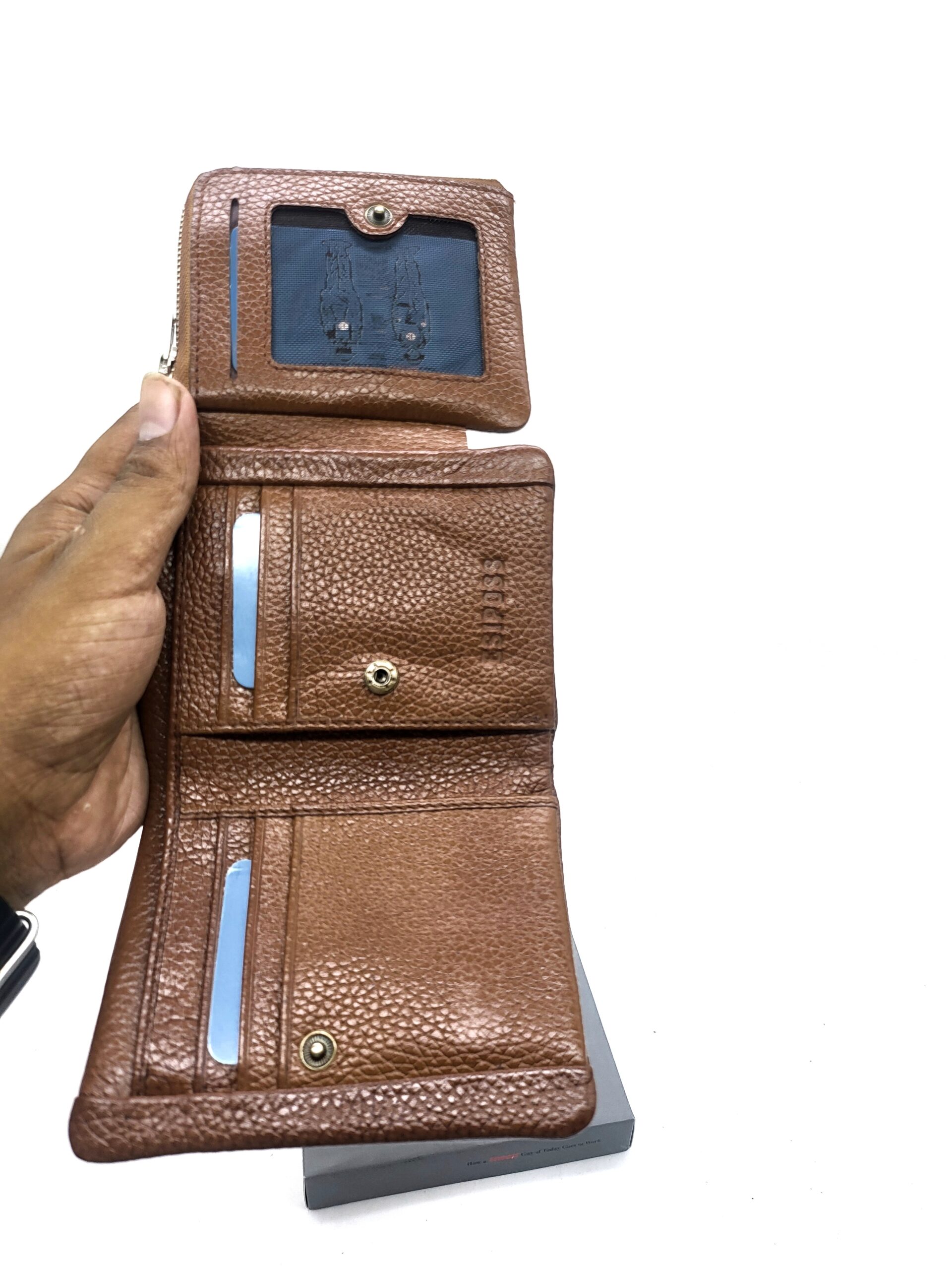 Discover a blend of modern sophistication and practical design with this ESTIPOSS FASHION Premium Leather Bifold Moneybag. This accessory is an essential for the modern gentleman, offering a compact and elegant way to organize your cards and currency. It is crafted from high-quality brown leather with a distinctive pebbled texture, providing both a luxurious feel and excellent durability. The front is adorned with a unique metallic emblem featuring the “ESTIPOSS FASHION” branding, adding a touch of exclusive style. Its bifold design opens to reveal multiple card slots, an ID window, and compartments for cash, offering ample space without adding bulk. Perfect for daily use or as a thoughtful gift, this moneybag combines minimalist design with premium materials for a statement of refined taste.