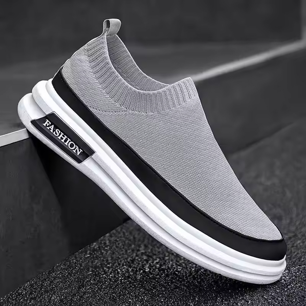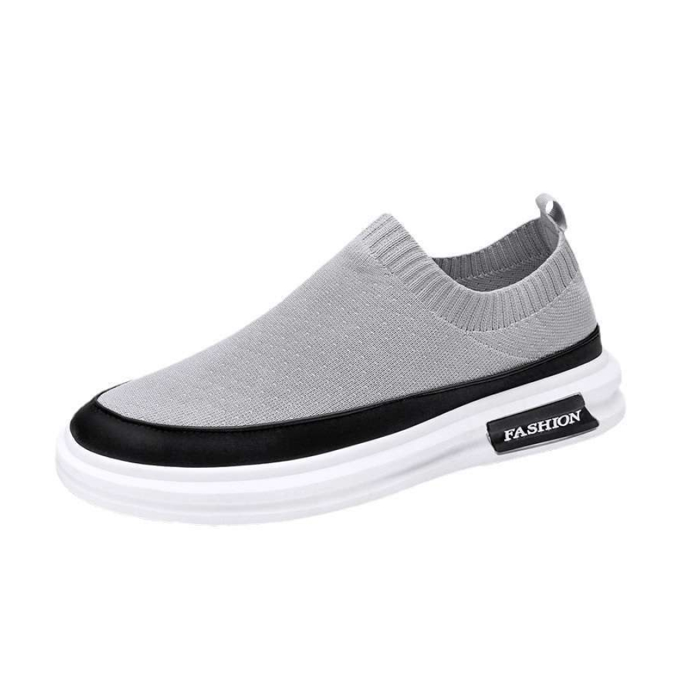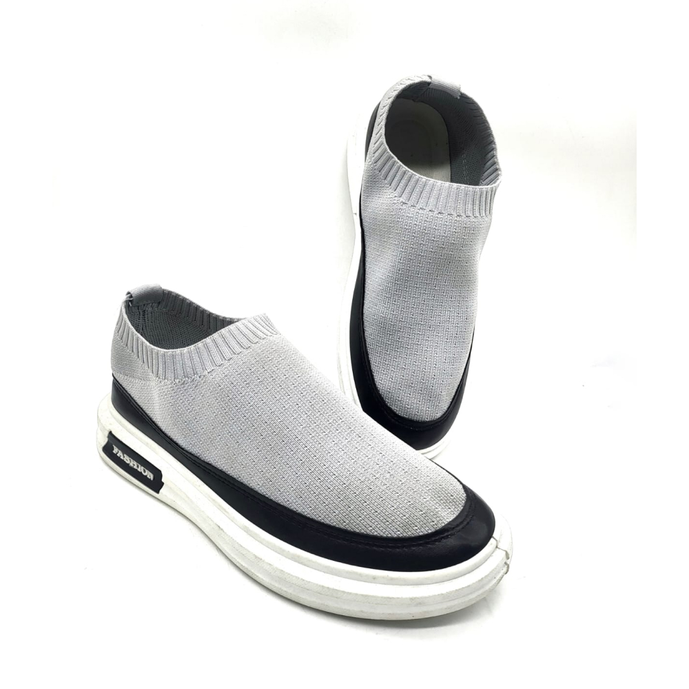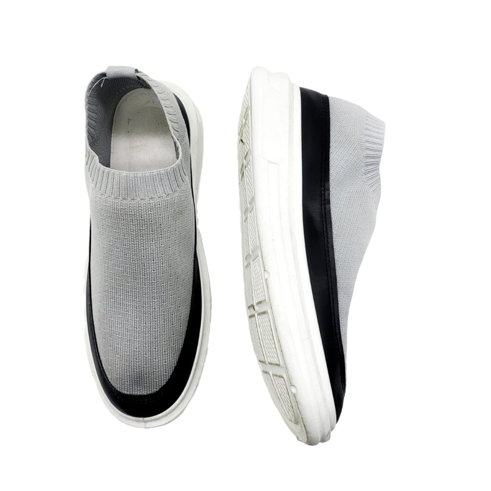 FASHION unisex grey slip-on knit sneakers. Featuring a breathable sock-like upper & stylish two-tone sole. Perfect for daily wear & active lifestyles.