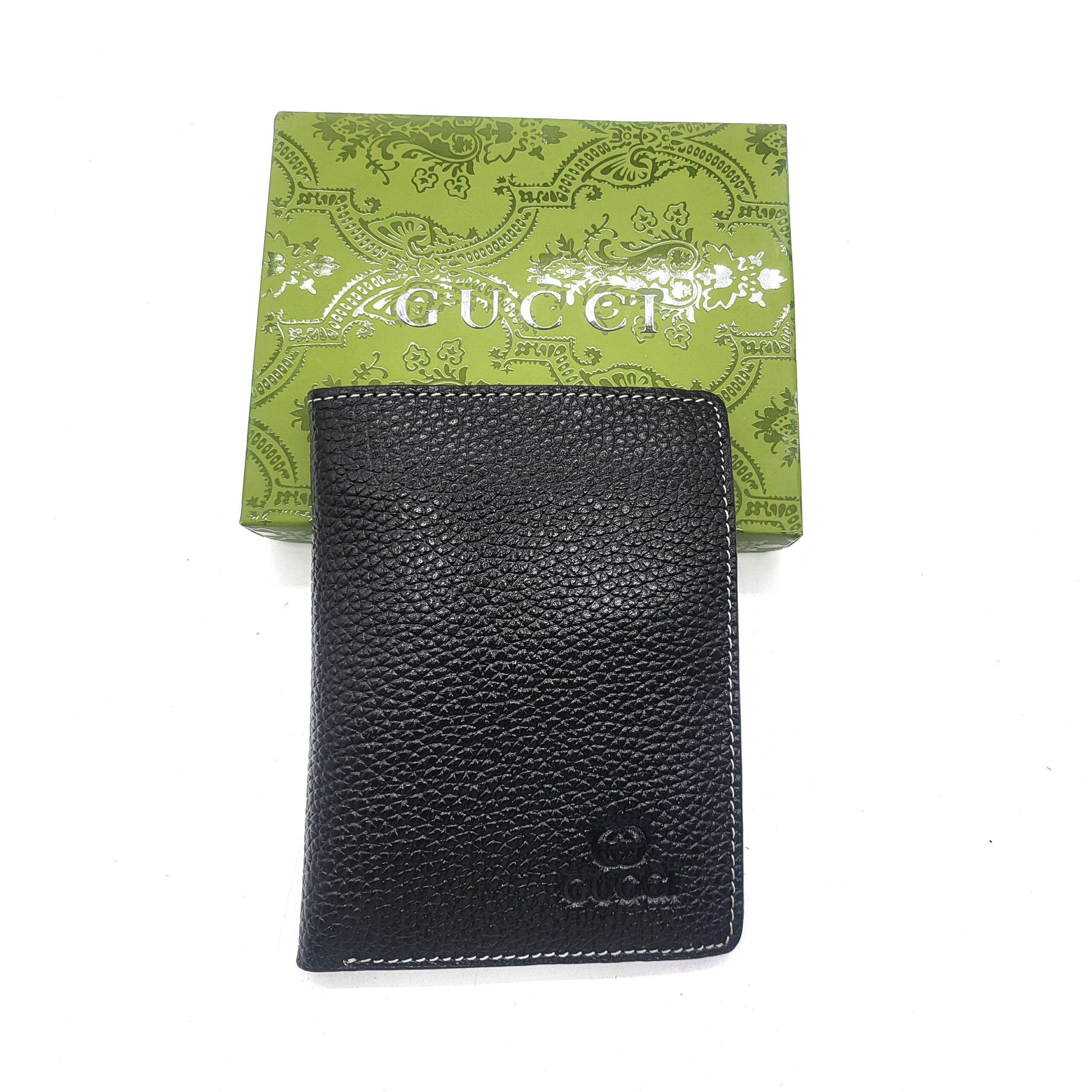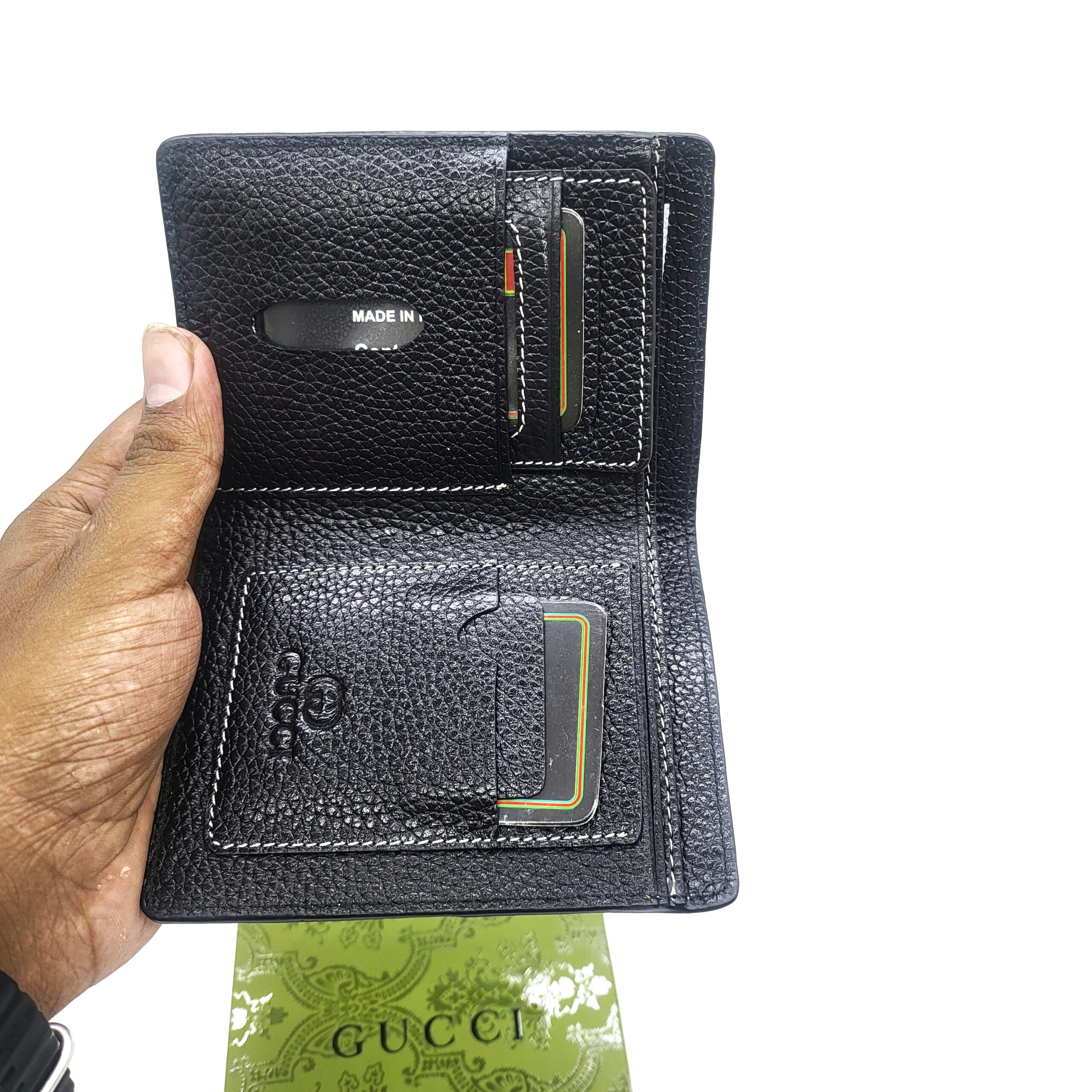 Discover a blend of iconic sophistication and practical design with this Gucci premium leather short moneybag – black. This accessory is an essential for the modern gentleman, offering a compact and elegant way to organize your cards and currency. It is crafted from high-quality black leather with a distinctive pebbled texture, providing both a luxurious feel and excellent durability. The classic white stitching around the edges adds a subtle touch of craftsmanship and a timeless aesthetic. Its bifold design opens to reveal multiple card slots, an ID window, and compartments for cash, offering ample space without adding bulk. Perfect for daily use or as a thoughtful gift, this Gucci moneybag combines minimalist design with premium materials for a statement of refined taste.