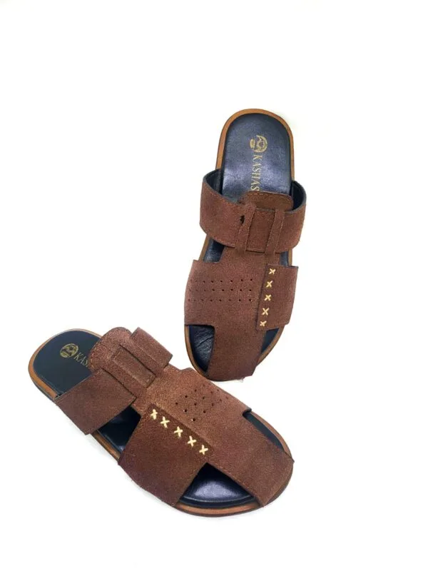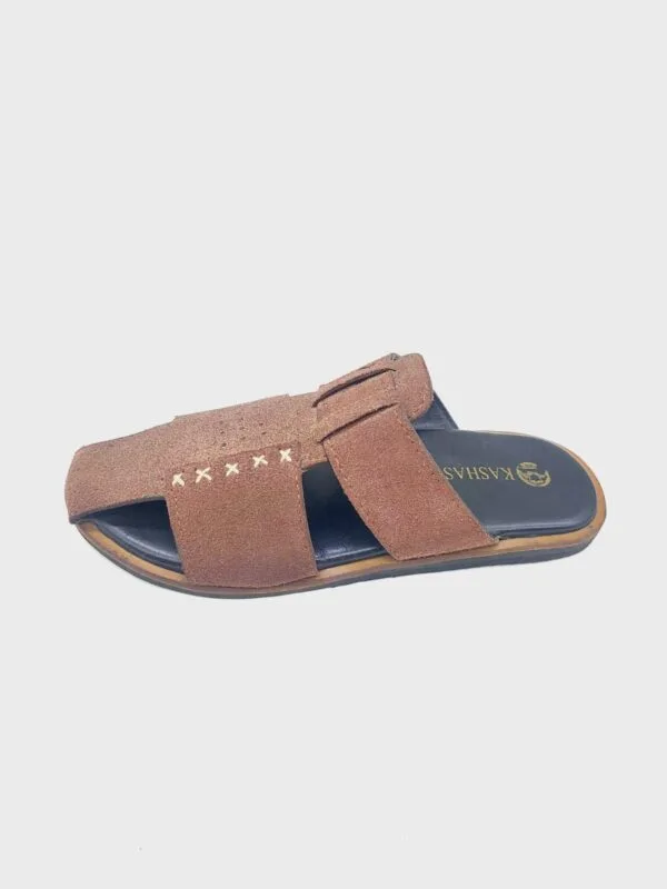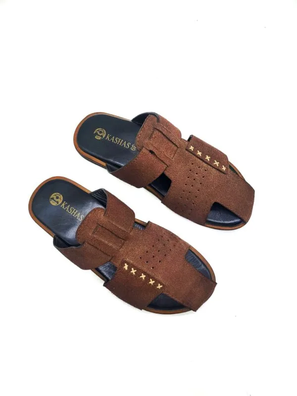 Discover the perfect blend of traditional style and modern comfort with the Kashas Men’s Brown Closed-Toe Sandals. Designed for the modern man who values both aesthetics and ease, these sandals are a versatile addition to your everyday wardrobe. They feature a rich brown upper, likely a soft suede or synthetic material with a subtle texture, and a distinctive closed-toe design that offers enhanced protection. The sandals are accented with stylish perforated detailing on the sides and intricate cross-stitching, adding a unique visual appeal and promoting breathability. With a slip-on style and a comfortable, contoured footbed, these sandals provide excellent support and a relaxed fit for all-day wear. The durable sole ensures reliable traction, making them ideal for casual outings, daily errands, or simply relaxing at home.
