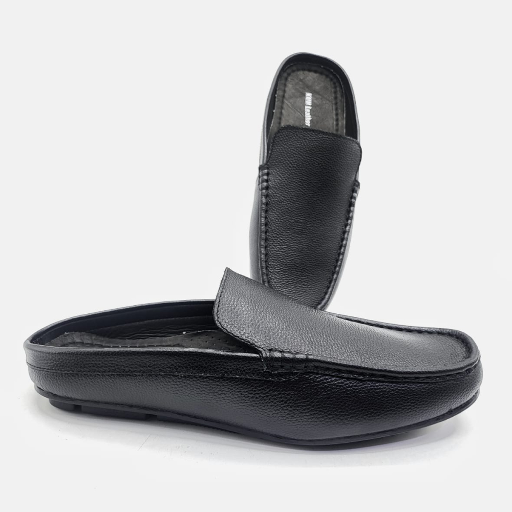 Experience effortless style and superior comfort with the KMM Leather Men’s Casual Half Loafers in classic black. These fashionable mules are designed for the modern Bangladeshi man who values both ease and elegance. Crafted from high-quality leather, they offer a soft touch, excellent durability, and natural breathability, ensuring your feet stay comfortable even on busy days. The slip-on, backless design provides ultimate convenience, making them incredibly easy to wear for any casual occasion. Featuring classic stitch detailing around the toe and vamp, these loafers combine traditional craftsmanship with a contemporary relaxed fit. The comfortable footbed and flexible sole ensure a smooth, confident stride. Perfect for a quick run to the market, a relaxed day at the office, or casual gatherings with friends, these KMM Leather half loafers are your go-to choice for blending comfort, style, and everyday practicality.