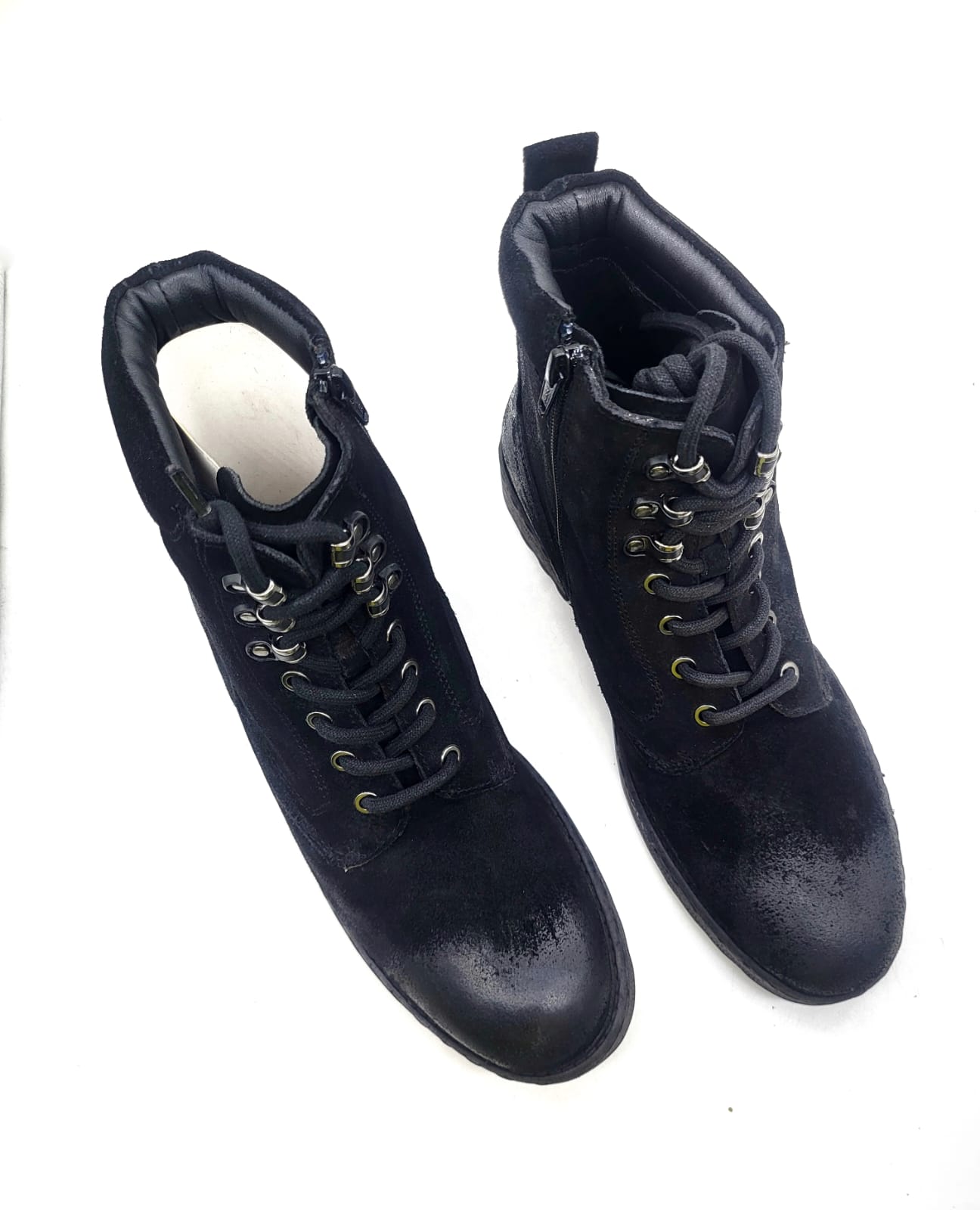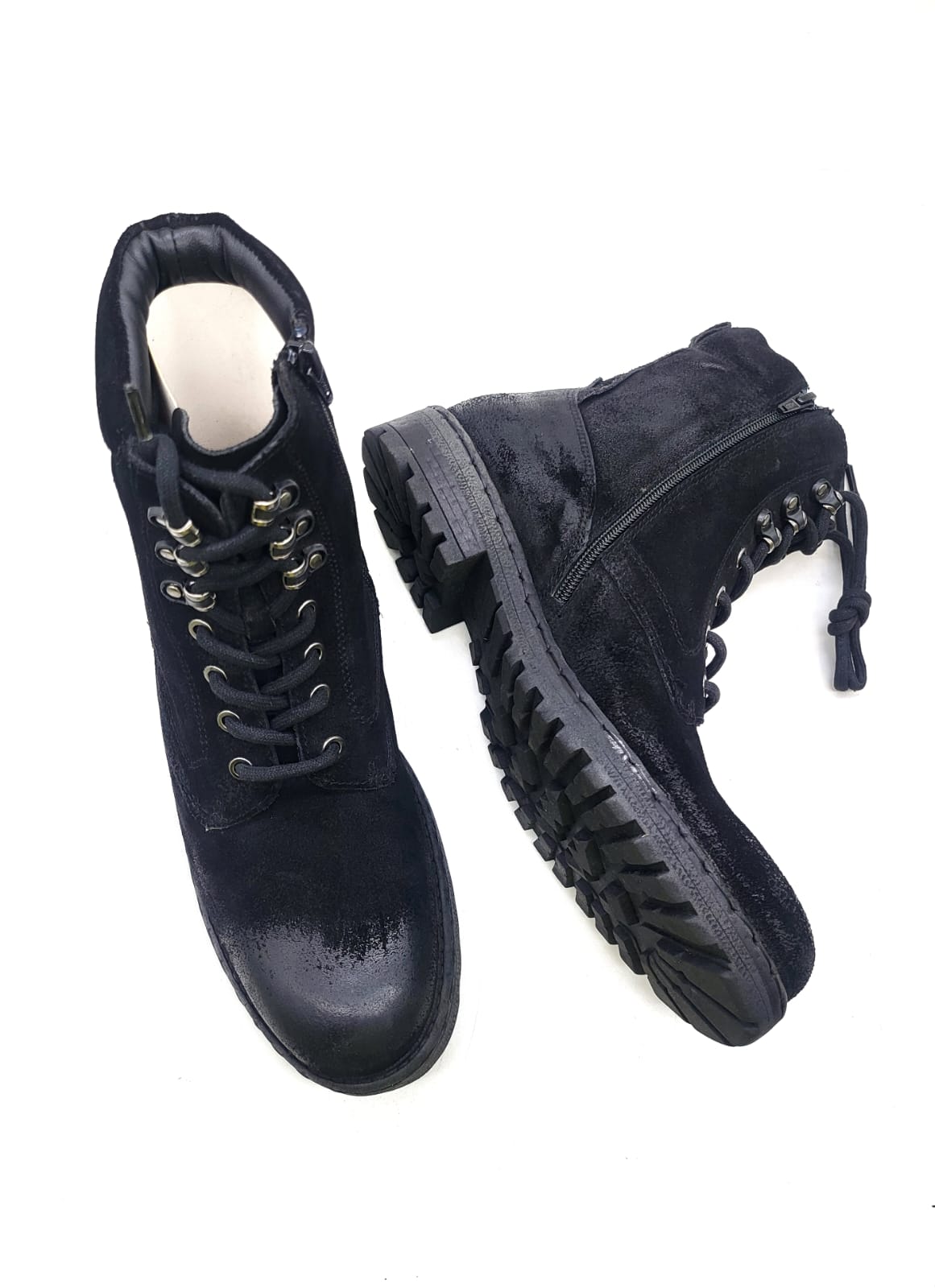 - Edgy Distressed Finish: Unique black upper with a subtle worn-in or textured appearance.